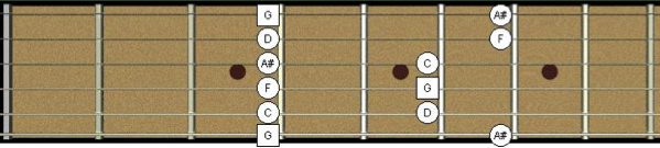 One way to break out of the same old rut is to start adding some passing notes, approach notes, and slinky or angular lines into your phrasing. Check out our run of the mill minor pentatonic pattern.